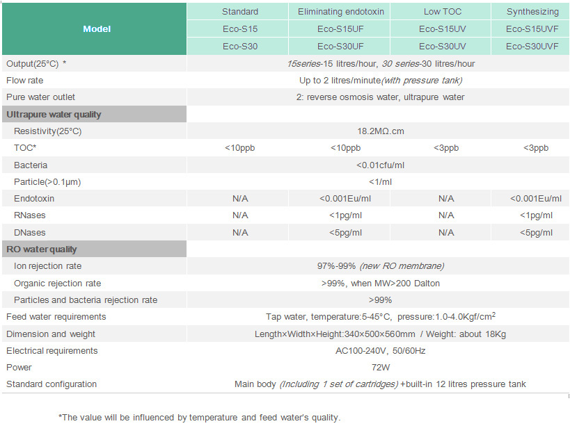Eco-S series ultrapure water system(tap water inlet)
